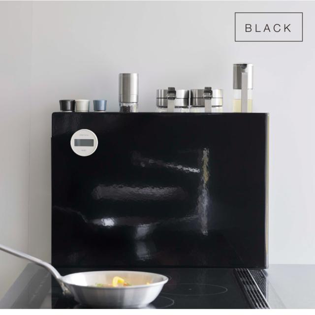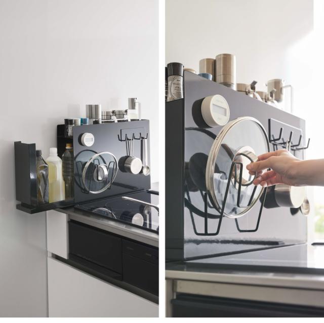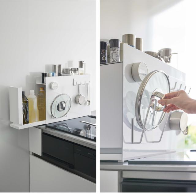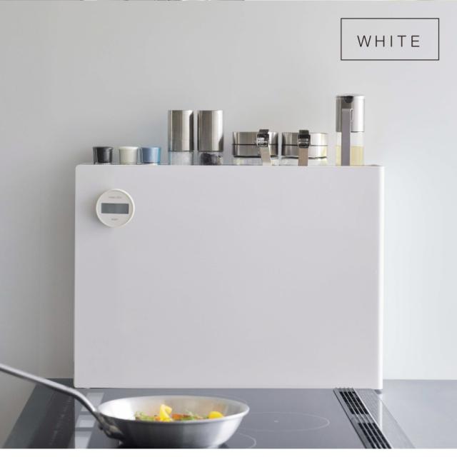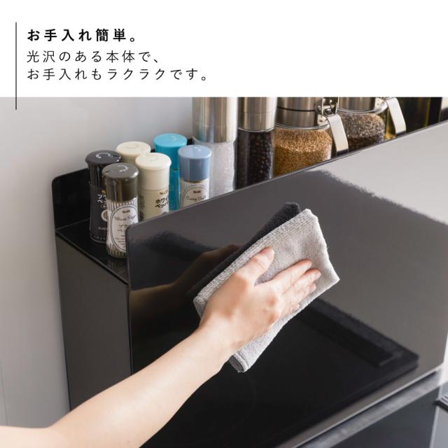 コンロ横のデッドスペースに、スリムに収納でき、油跳ねで調味料が汚れるのを防ぎます。