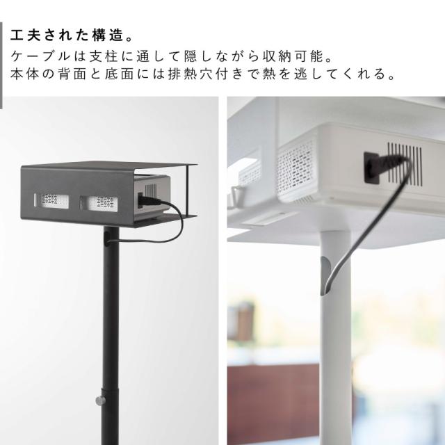 高さ調整できるプロジェクタースタンド。ケーブルも隠せるスタイリッシュなデザイン。