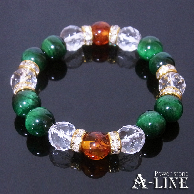 世界的金運石のグリーンタイガーアイをベースに「最古の宝石」と呼ばれるアンバー(琥珀)を使用した「金運」と「財運」に特化したブレスレット♪