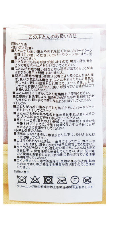 | ■時折中の羽毛が透けて見えることがあります。カビや汚れではありませんので、ご安心してお使い下さい。 | ||||