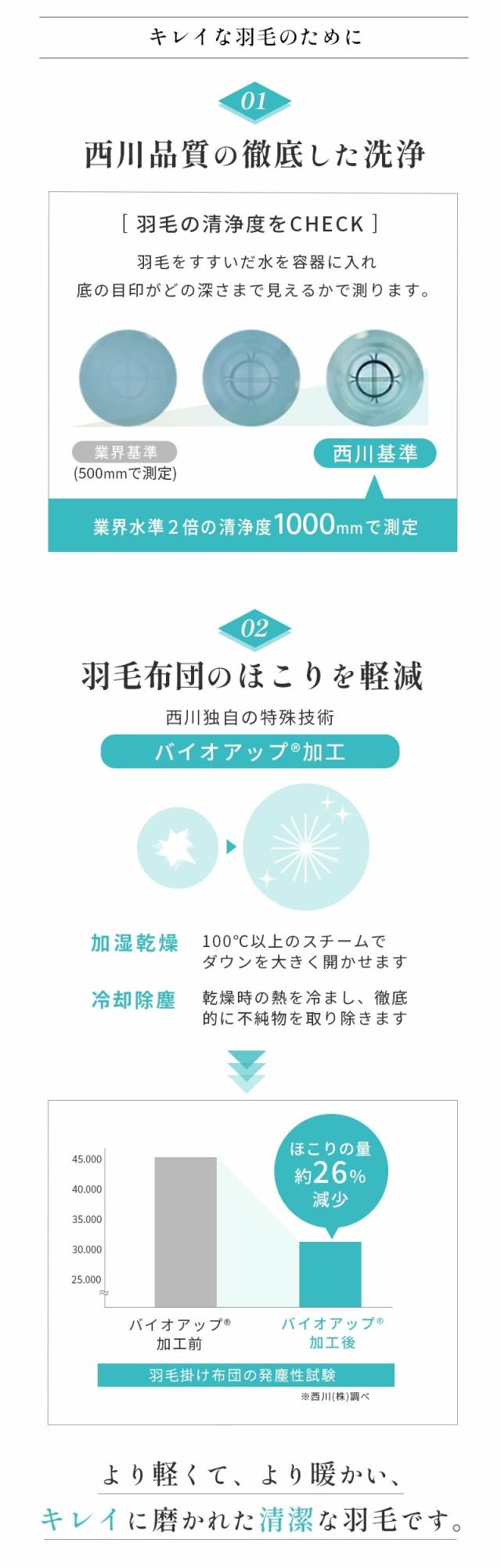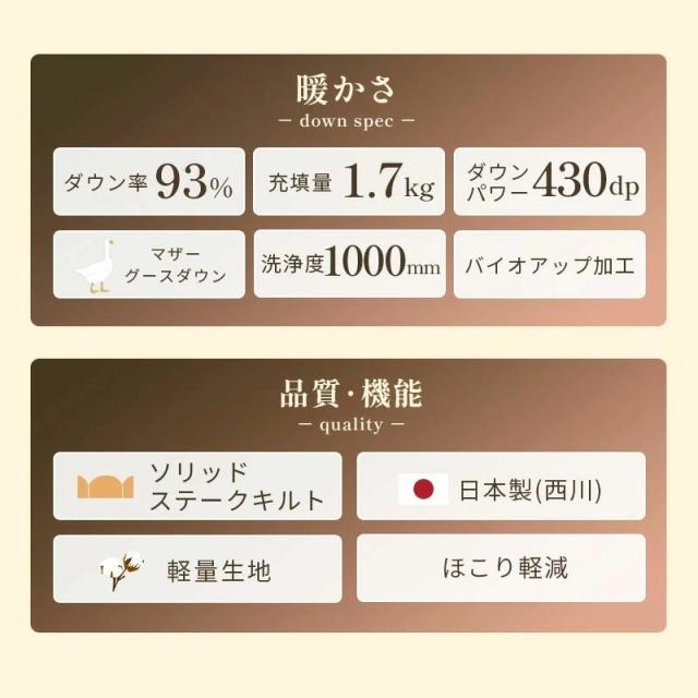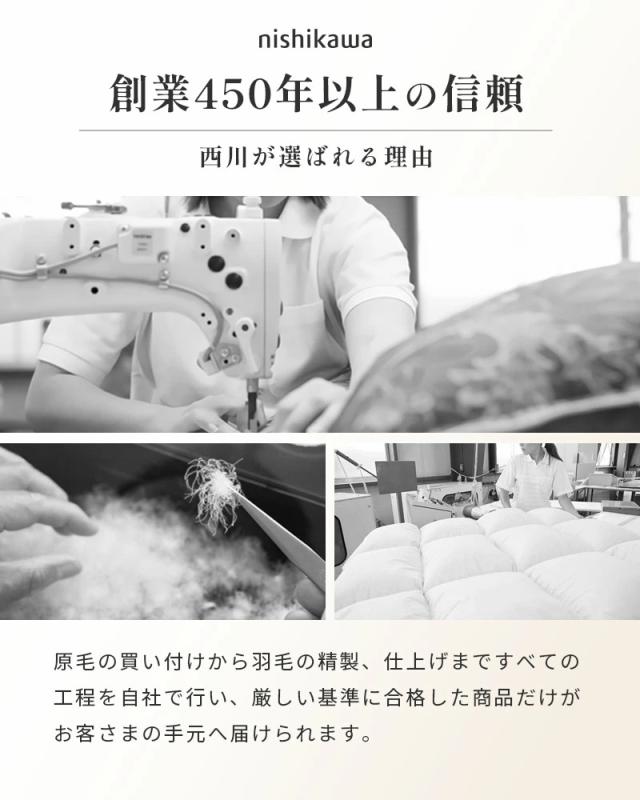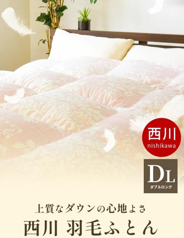 羽毛布団 グース ダブル ロング 西川 日本製 1.7kg マザーグース ダウン93% 立体キルト 430dp以上 綿混生地