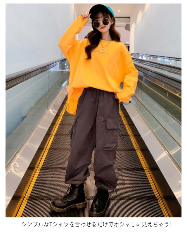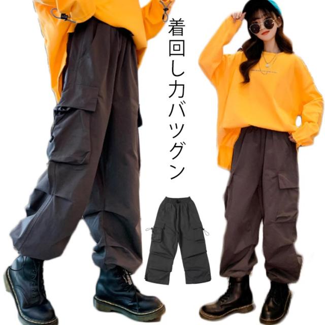 カーゴパンツ キッズ ダンス衣装 キッズ ワイドパンツ ズボン 綿100% レッスン着 ヒップホップ ミリタリー K-POP 韓国 韓国子供服 グレー 110 120 130 140 150 160 170