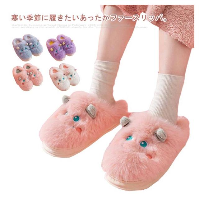 スリッパ 暖かい かわいい レディース 冬 ルームシューズ もこもこ アニマルフェイス 大人 もこもこ ふわふわ ボア 冷え対策 寒さ防止 軽量 室内履き あったか フェイクファー ファースリッパ 冬 厚底 可愛い 滑り止め プレゼント ギフト 贈り物