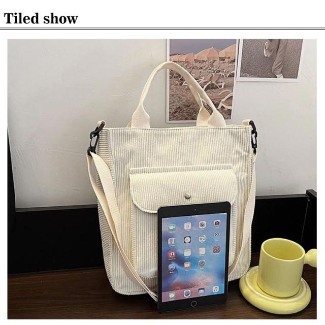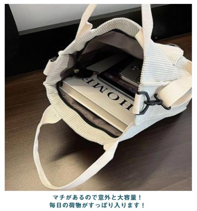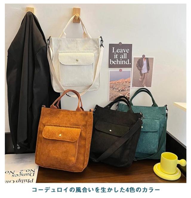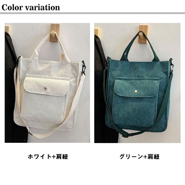 | 【使用用途】コーデュロイの風合いがかわいいバッグです。トートバッグ・ショルダーバッグ・斜め掛けバッグの3WAYでご使用できます。 【コンパクトに持ち運び】マチがあるので意外と大容量!毎日の荷物がすっぽり入ります! 【ポケット】外側にはポケット付きなので、荷物の整理ができます。 【こだわりのカラー】コーデュロイの風合いを生かした4色のカラー 【デザイン】ポケットがアクセント!カジュアルコーデにぴったりです。 【ショルダーストラップ】ショルダーは長さ調節が可能で斜め掛けにも、肩掛けにも! | |