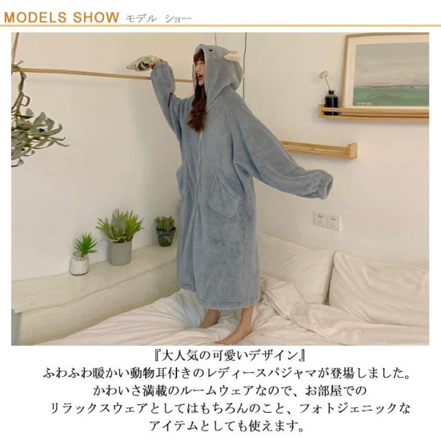 | 『大人気の可愛いデザイン』ふわふわ暖かい動物耳付きのレディースパジャマが登場しました。かわいさ満載のルームウェアなので、お部屋でのリラックスウェアとしてはもちろんのこと、フォトジェニックなアイテムとしても使えます。 『細部までこだわったもこもこパジャマ』トップスはリラックス感のあるゆったりめのシルエットで、ボトムスはすっきり見えて裾口からの冷気を防ぐテーパードシルエット。 『毛足長めのふっくら生地で保温性バッチリ』トップスはふわふわで柔らかく軽いボアフリース、ボトムスは極細糸を使用し、とてもなめらかで暖かく軽いマイクロフリースを使用。単品使いもオススメです。 『両面起毛だから、超ふわふわ』ふわふわのボアフリースとなめらかなマイクロフリースで抜群に暖かく心地よい上下セット。両サイドに大きめのポケットが付いているのも嬉しいポイントです。 『女子力の高いキュートなレディースパジャマ』たっぷりカラフルな8色からお選びいただけます。女性用の防寒対策用のルームウエア・部屋着としても、寒さが苦手な方にもオススメです。パジャマとして旅行先でも活躍します。 | |