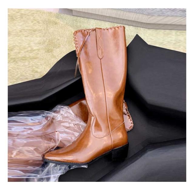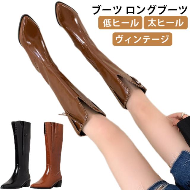 ウエスタンブーツ レディース ブーツ ロングブーツ 太ヒール ウエスタン タッセル 低ヒール ローヒール ヴィンテージ ビンテージ 韓国ファッション