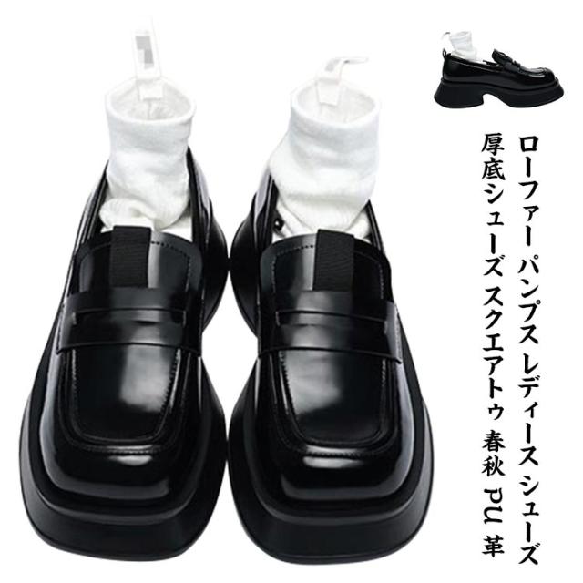 ローファー ローファー パンプス レディース シューズ パンプス 厚底シューズ スクエアトゥ 厚底パンプス 春秋 PU 革 ローファートゥクン 防滑 ヒール高4.5cm 歩きやすい 疲れない シンプル 秋新作