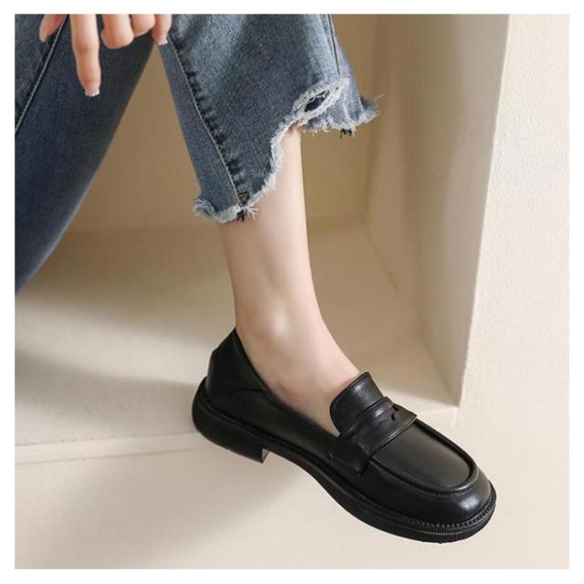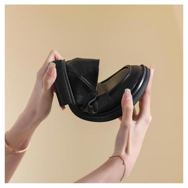 2way ローファー 厚底 レディース 厚底ローファー ヒール3.5cm ラウンドトゥ フラットシューズ PUシューズ ローファー プラットフォーム スクエアトゥ マニッシュ 黒 ブラック レトロ 楽チン 靴 オフィス シンプル