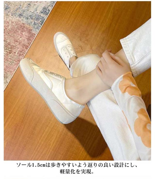 スリッポン スニーカー サテン シルクサテン フラットシューズ 靴 シューズ レディース ぺたんこ ホワイト ピンク シルバー やわらかい カジュアル ナチュラル 上品 疲れない やわらかい マタニティ