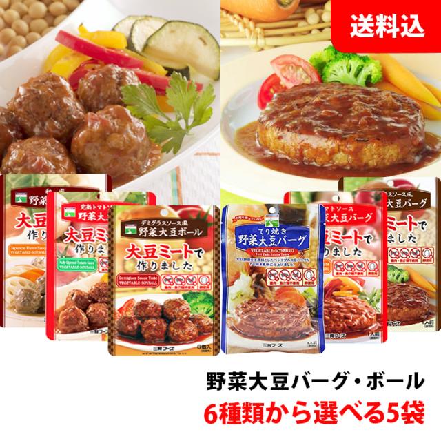 送料無料 メール便 野菜大豆バーグ / ミートボール 選べる5袋 (デミグラス・トマト・てり焼き・和風) お試しセット 三育フーズ 大豆ミート