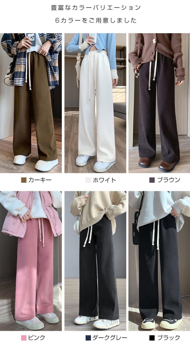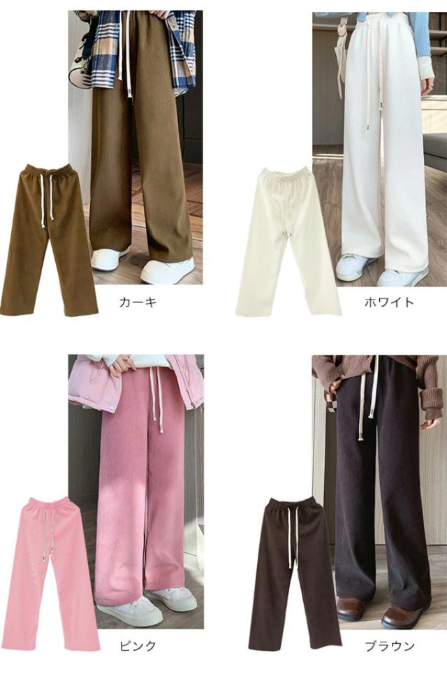 60%OFF、1592円、コーデュロイ リブ ワイド パンツ カジュアル ボトムス 裏起毛 暖か 選べるバリエーション レディース おしゃれ 流行 シンプル 着回し 大人可愛い 無地 楽ちん ズボン ウエストゴム ロング