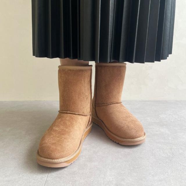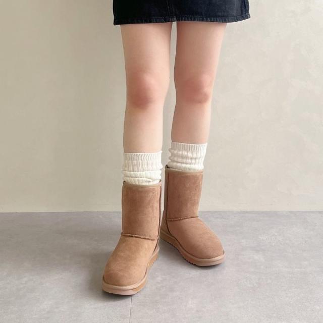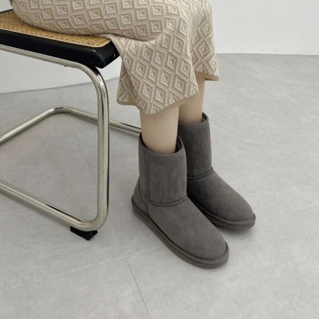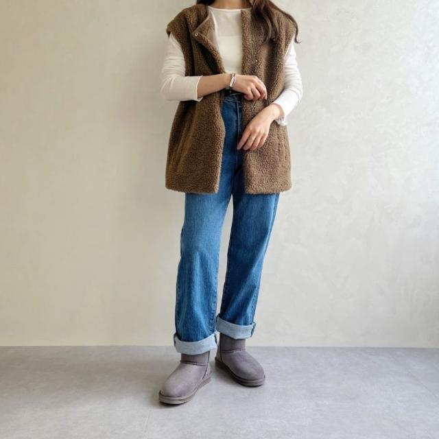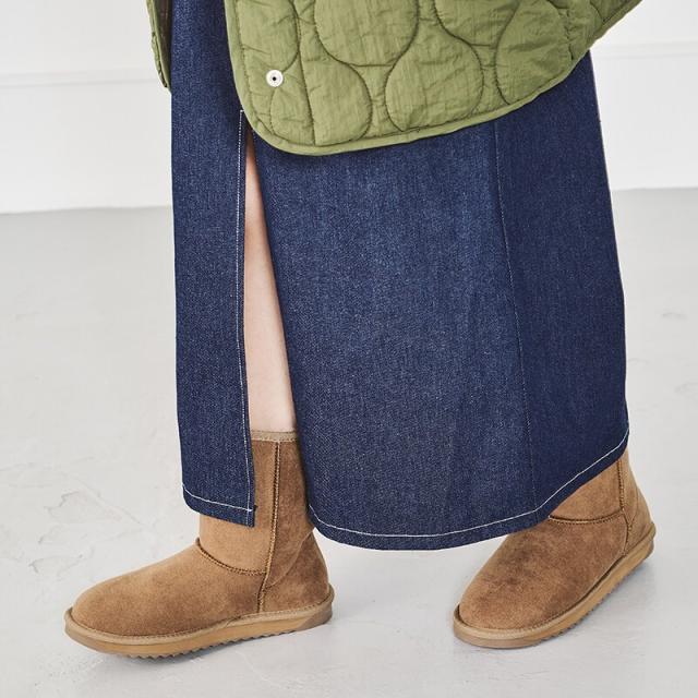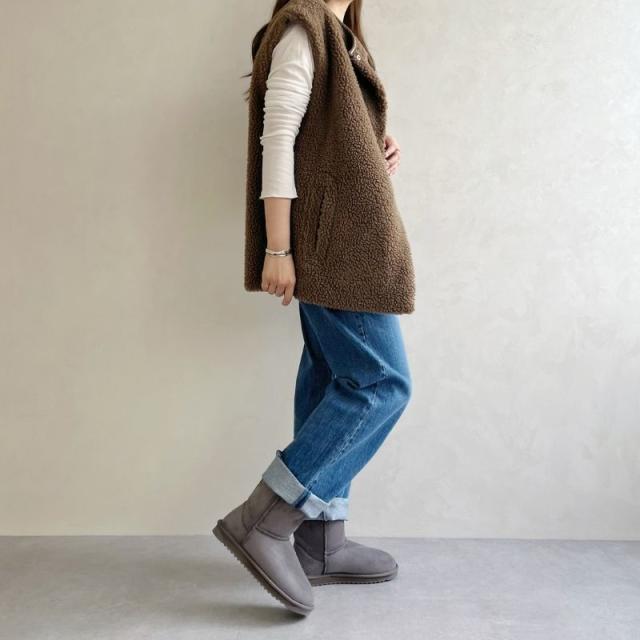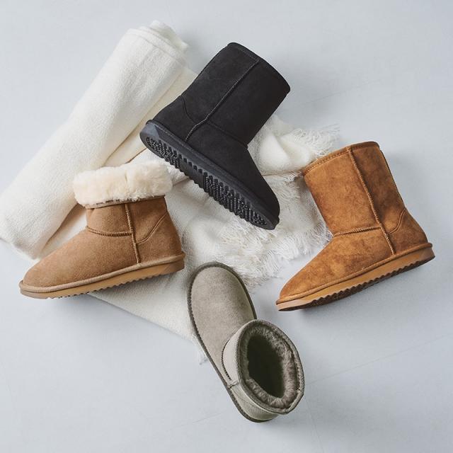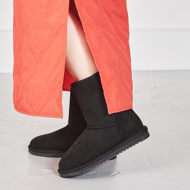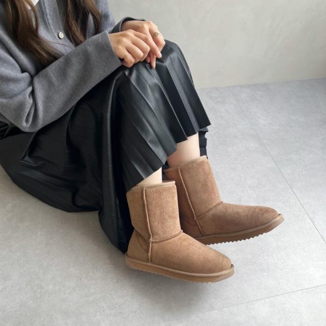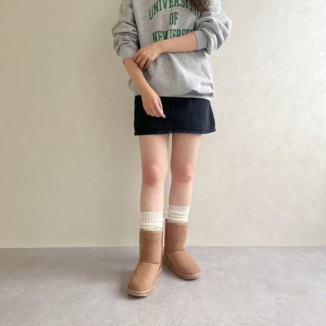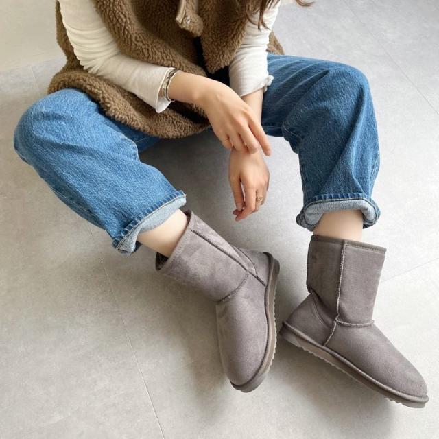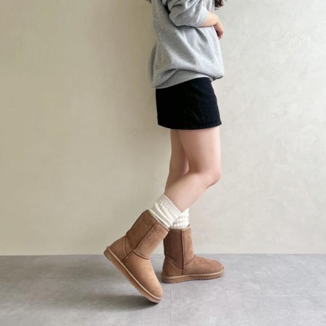 どんなコーディネートにも合わせやすいミドル丈のムートンブーツは、