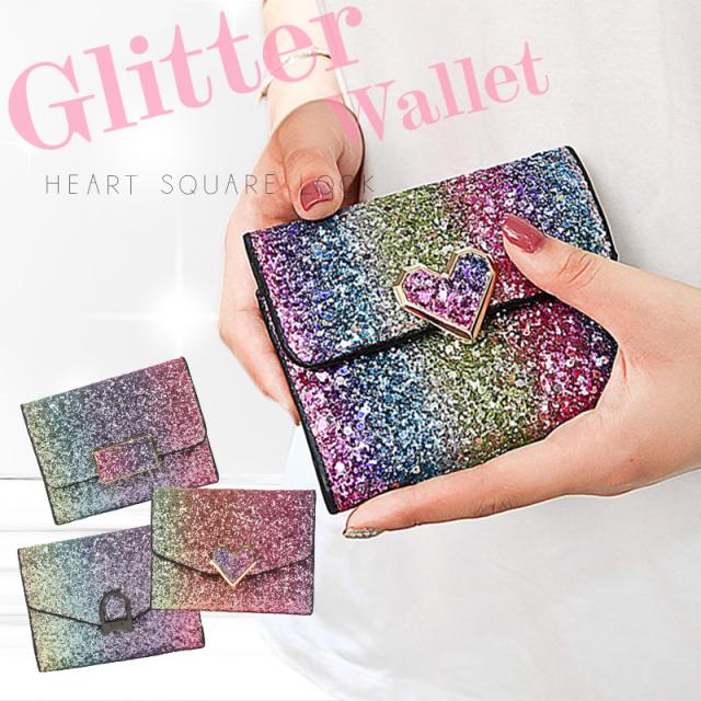 キラキラ 財布 三つ折り ラメ ハート レディース 札入れ カード入れ 可愛い おしゃれ カラフル ゴージャス 人気 きれい 送料無料