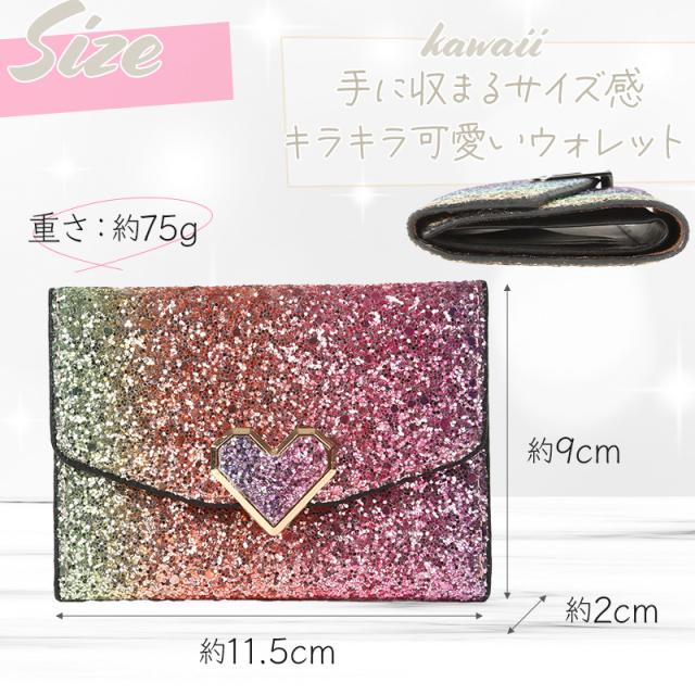 キラキラ 財布 三つ折り ラメ ハート レディース 札入れ カード入れ 可愛い おしゃれ カラフル ゴージャス 人気 きれい