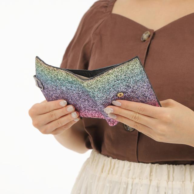 【可愛い!キラキラ・スパークなお財布】 キラキラしたデザインで見とれてしまう財布です。 ずっと使うものなので、毎日見入ってしまう財布の方が心が癒される気がします。 入手困難品です。 ハート型、スクエア型、ロック型とフロントの飾りがアクセントになりとっても可愛い。 バッグから取り出したときの輝きが目を惹くビューティーアイテムです。 小さめのバッグにもサッと入る 大きすぎないサイズ感も可愛らしい ※外側の色の配色は全てランダムです。色の指定、色の位置違いの指定はできません。 ■サイズ■ 約 横11.5cm×縦9cm×厚さ2cm ■構造■ カード入れ×5 フリーポケット×2 札入れ×1 | |