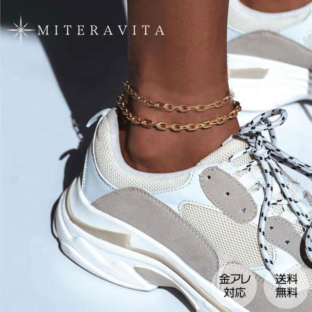 【半額SALE】サージカルステンレス アンクレット パンクリンクチェーン フット アクセサリー つけっぱなしOK 肌に優しい 医療用ステンレス レディース ゴールドアクセサリー K18 金属アレルギー 金アレ対応 サージカル SUS316L ゴールド miteravita ミテラヴィータ【A1】