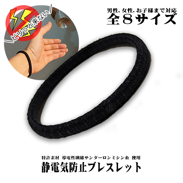 強力 特許素材! 日本製 静電気除去 ブレスレット グッズ メンズ レディース キッズ 子供から大人 全8サイズ GOODデザイン シンプル おしゃれ ブラック 送料無料