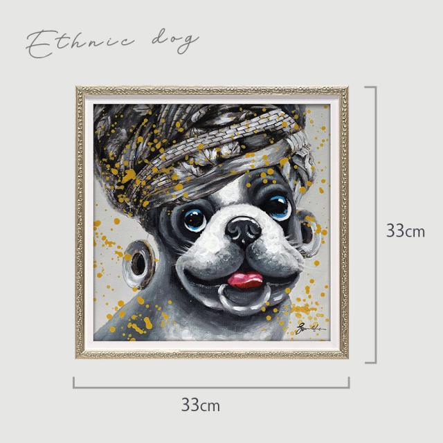 オイルペイント ハンドペイント 33X33cm イヌ ポップ カラフル アート 絵画 壁掛け 油絵 オイルペイント エスニックドッグ