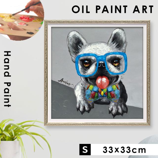 オイルペイント ハンドペイント 33X33cm イヌ ポップ カラフル アート 絵画 壁掛け 油絵 オイルペイント ブルーグラス