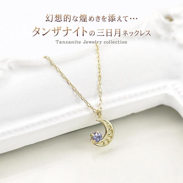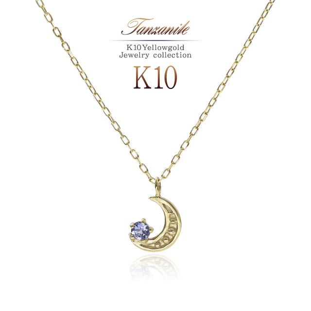 タンザナイト ネックレス レディース 10K イエローゴールド 小ぶり ムーン 三日月 モチーフ 可愛い 大人 誕生日 プレゼント 記念日 ギフト お祝い 12月 誕生石 K10 10K 青紫 宝石 本物 天然石 月 プチ 小さい 小さめ 小振り 彼女 嫁 娘 友達 おしゃれ クリスマス プレゼント