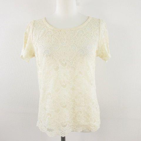 【中古】アーバンリサーチ URBAN RESEARCH カットソー 花柄レース 半袖 アイボリー F *A682 レディース