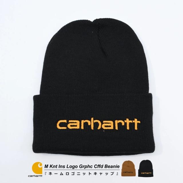 メール便送料無料 カーハート Carhartt ニット帽 ニットキャップ メンズ レディース ネームロゴ刺繍 ロゴパッチ Knit Insulated Logo Graphic Cuffed Beanie 104068 USA企画