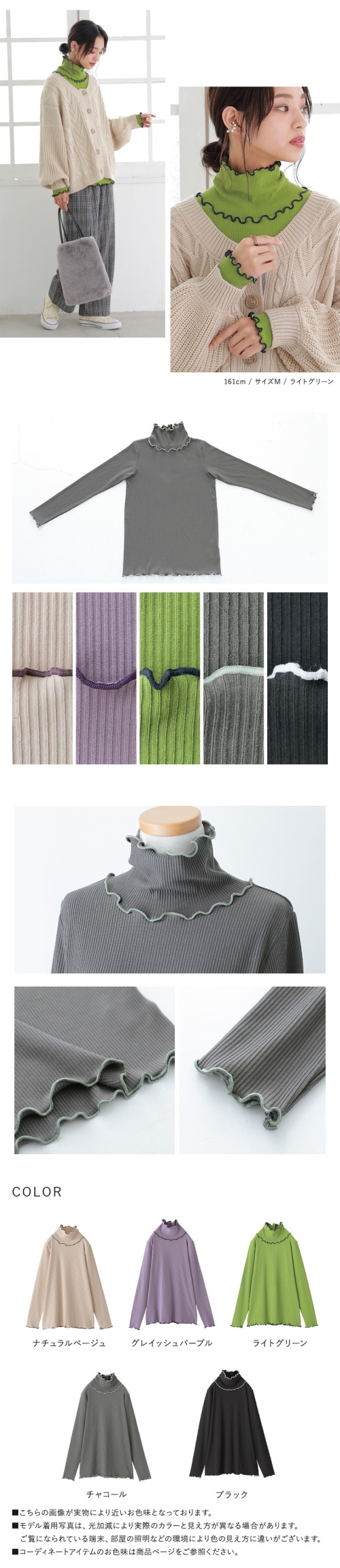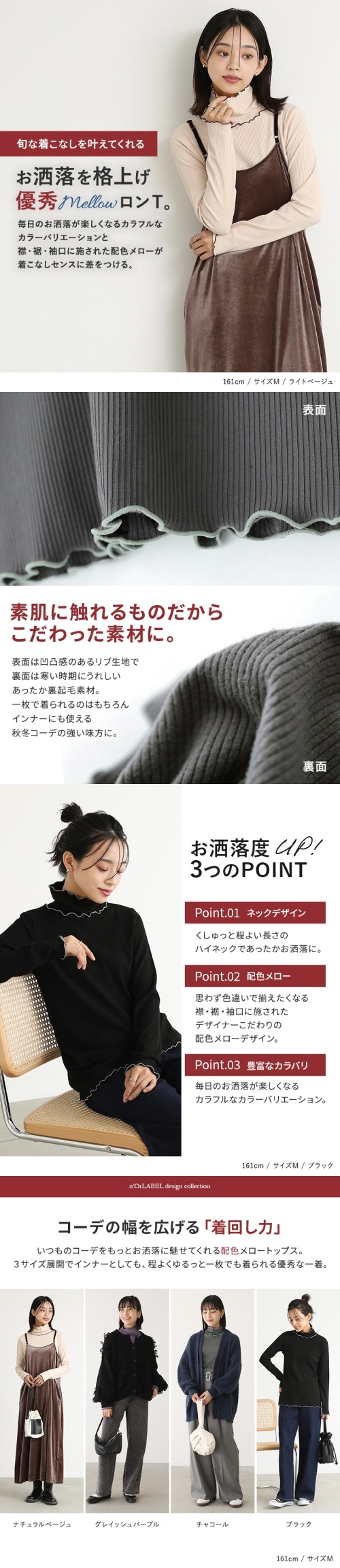 レディース トップス ロンT カットソー プルオーバー インナー ハイネック タートルネック 長袖 メロー メロウ 配色 無地 リブ生地 レイヤード 重ね着 おうちで洗える 防寒 あったか 微起毛 裏起毛 秋冬 女子会 カジュアル お出掛け 旅行 通学 お買い物 大人女子 大人可愛い お洒落可愛い モード シンプル ナチュラル ニュアンス ラフ Mサイズ Lサイズ LLサイズ XLサイズ 10代 20代 30代 40代 50代 60代 n'OrLABEL ノア—ルレーベル ベージュ ナチュラルベージュ グリーン 緑 ライトグリーン グレー 灰色 チャコールグレー チャコール ブラック 黒 ビビッド 差し色 カラバリ cmrecommend グレイッシュパープル パープル 紫 【トップス】[ID]tin0415[裏起毛配色メローリブタートルネックカットソー]