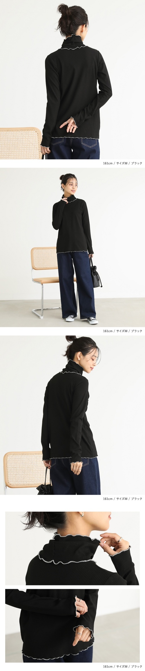 『着こなしセンスに差をつける。』 いつものスタイルをもっとお洒落に魅せてくれる、配色メローロンT♪ 襟・裾・袖口に施されたデザイナーこだわりの配色メローデザインに、思わず色違いで揃えたくなるカラフルなカラーバリエーションが魅力。くしゅっと程よい長さのハイネックで首元もあたたかくお洒落が楽しめます。 表面は凸凹感のあるリブ生地×裏面は寒い時期に嬉しいあったか裏起毛素材を使用。一枚で着られるのはもちろん、インナーとしてもレイヤードスタイルのポイントになるコーデの強い味方です。 |