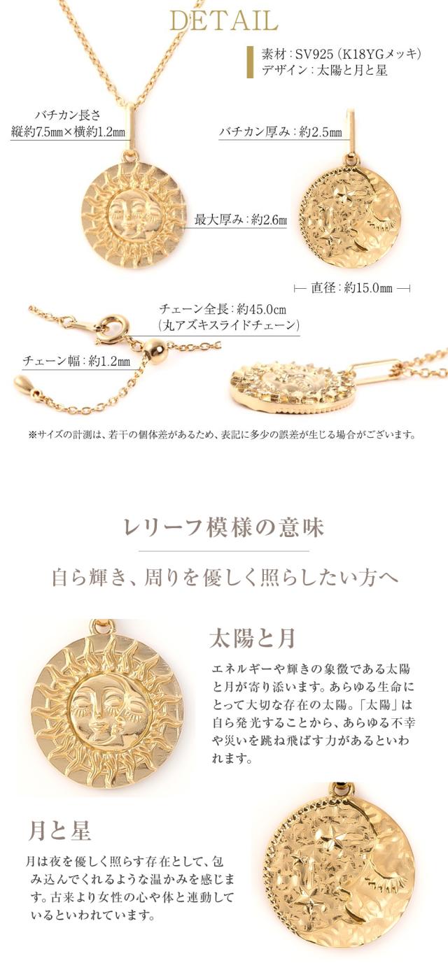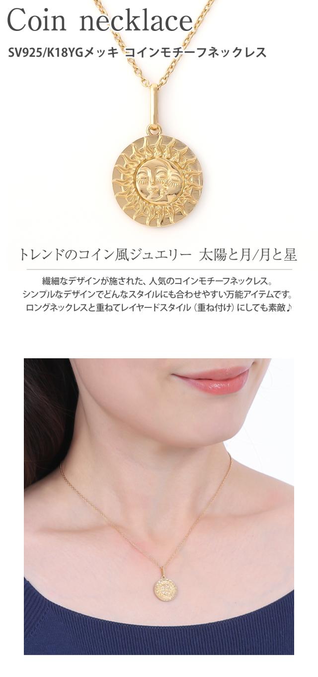 ネックレス レディース コイン k18コーティング ペンダント コインネックレス 18金 k18 ゴールドネックレス メンズ 太陽 月 星 SV925 金属アレルギー おしゃれ 大人 カジュアル 硬貨 メダル ジュエリー アクセサリー シンプル 誕生日 プレゼント 女性 ギフト 母の日