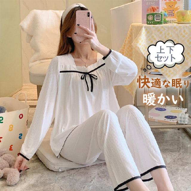 パジャマ 寝巻き セットアップ 上下セット レディース ファッション 柔らか 可愛い ナイトウェア 部屋着 ロングパンツ カジュア