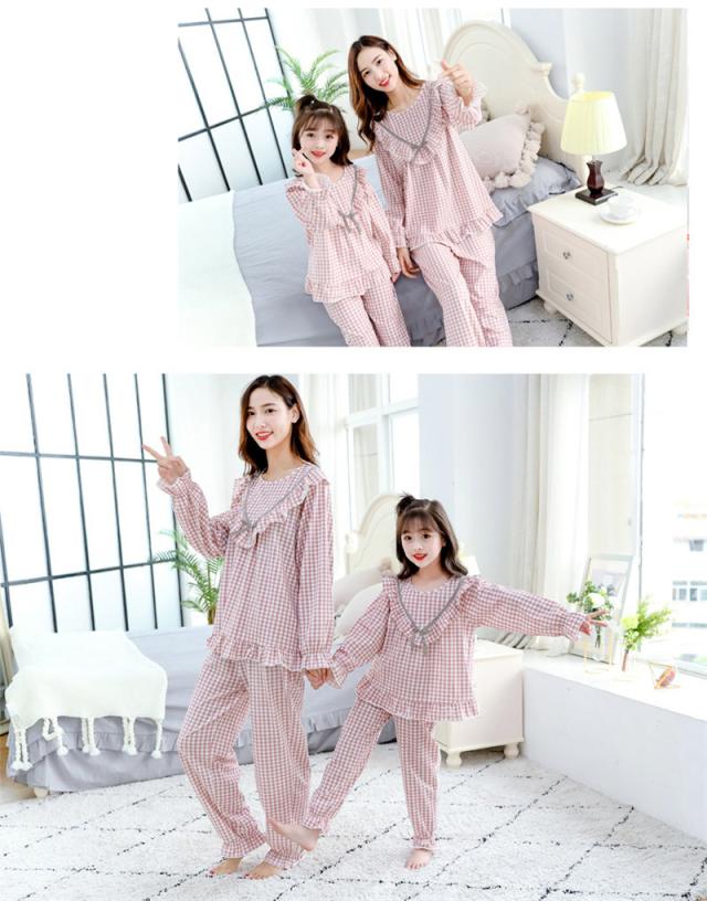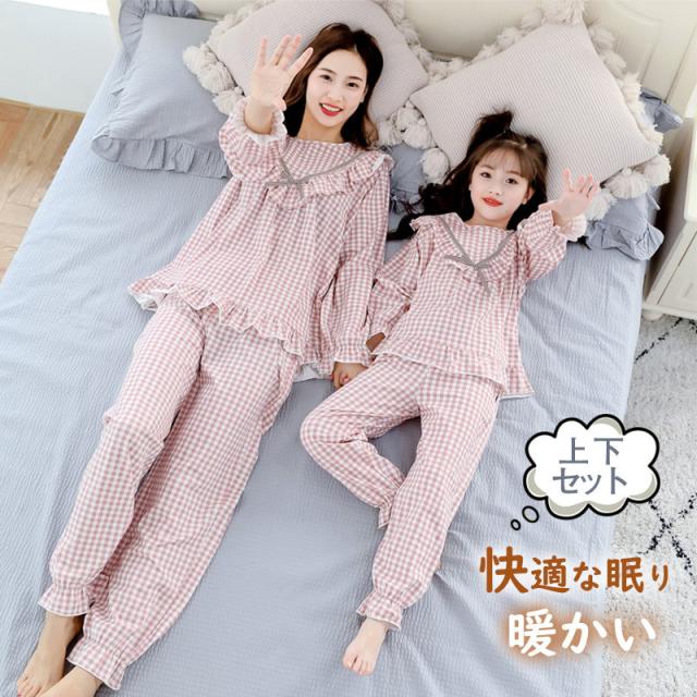 パジャマ 寝巻き セットアップ 上下セット レディース 親子 ママ レース 姫系 マキシ丈 パジャマ キッズ 部屋着 親子ペアルッ