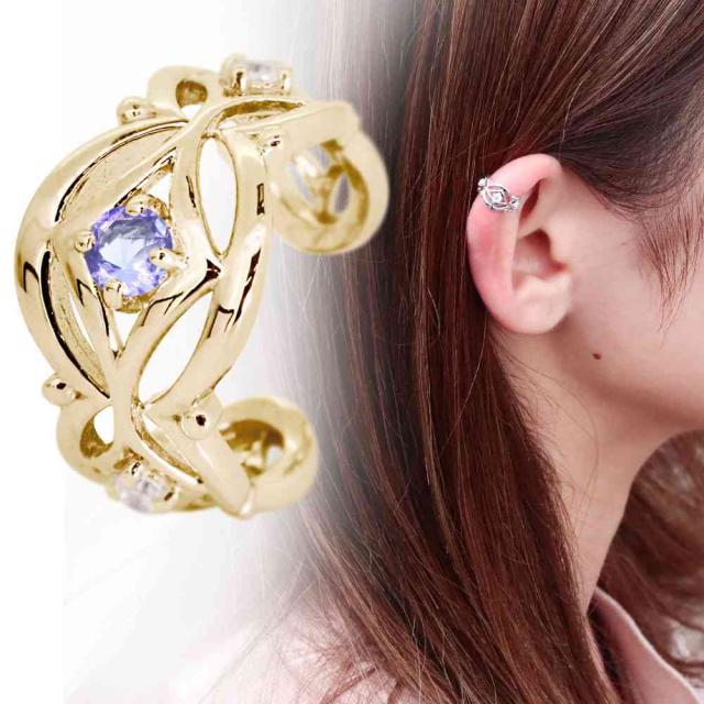イヤーカフ レディース ゴールド 18金 18k タンザナイト 12月誕生石 イヤカフ 片耳用 おしゃれ 大人