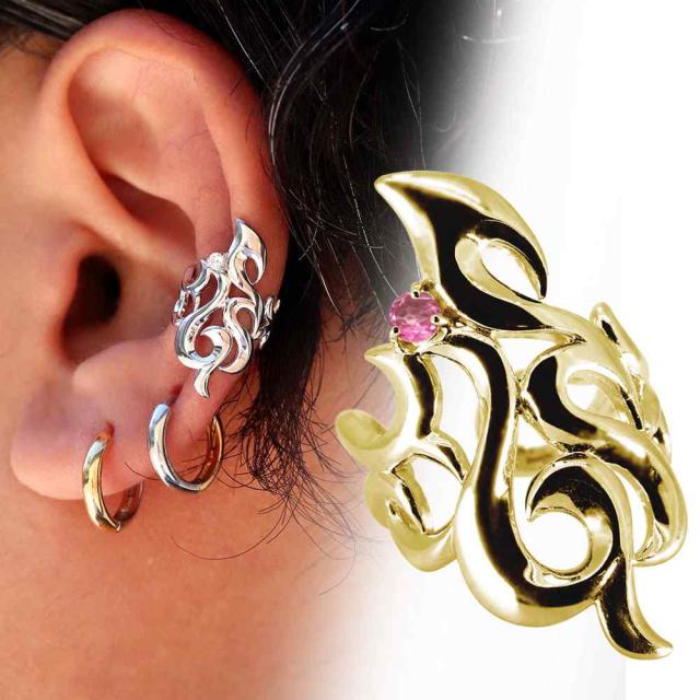 イヤーカフ メンズ かっこいい ゴールド 18金 18k イヤカフ 唐草 片耳用 ピンクトルマリン 10月誕生石