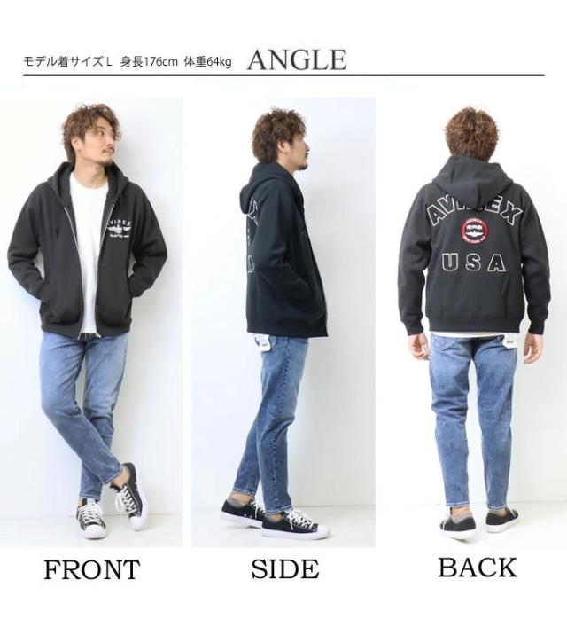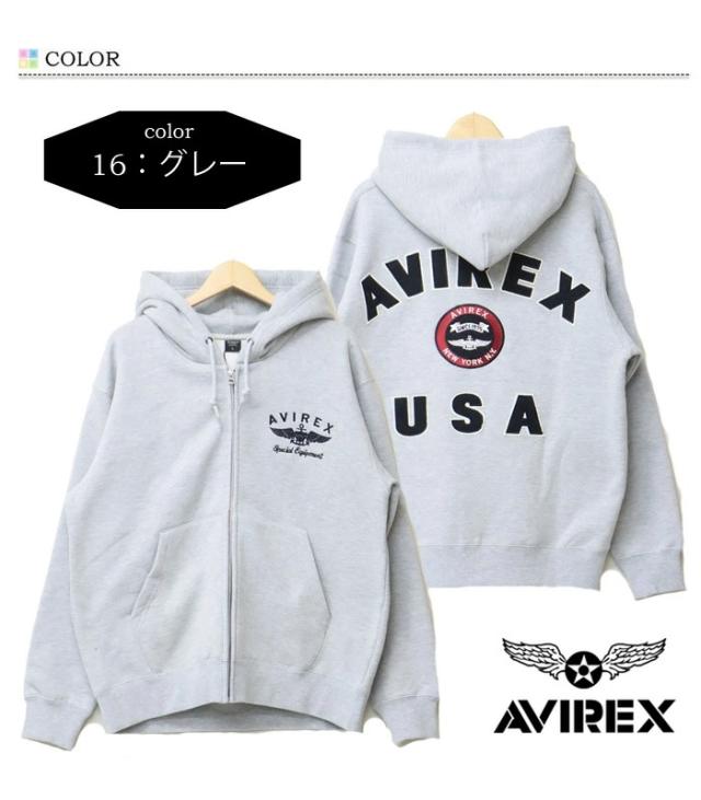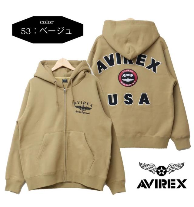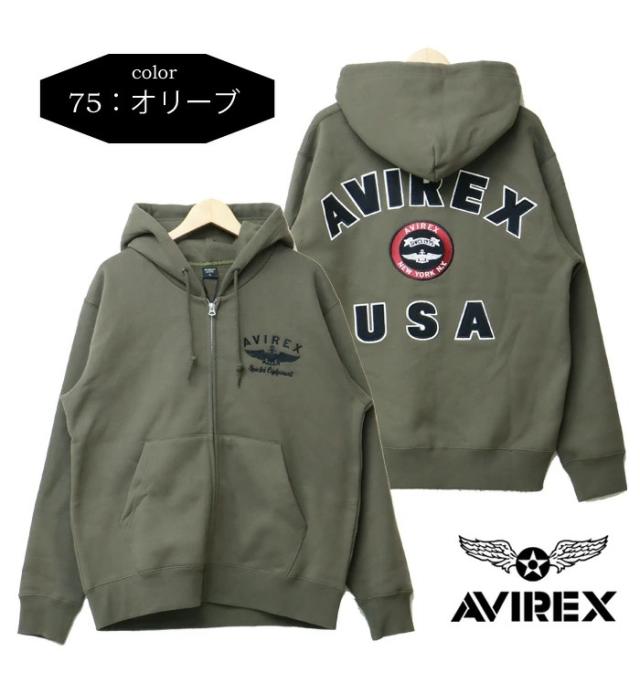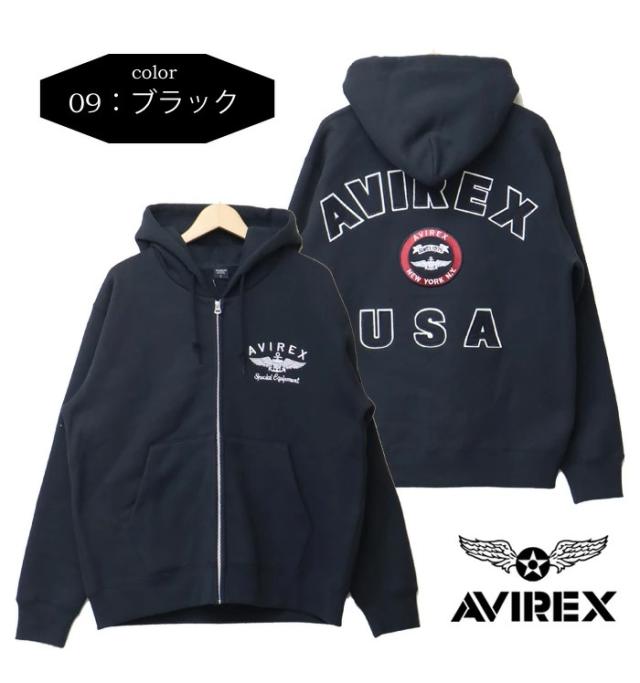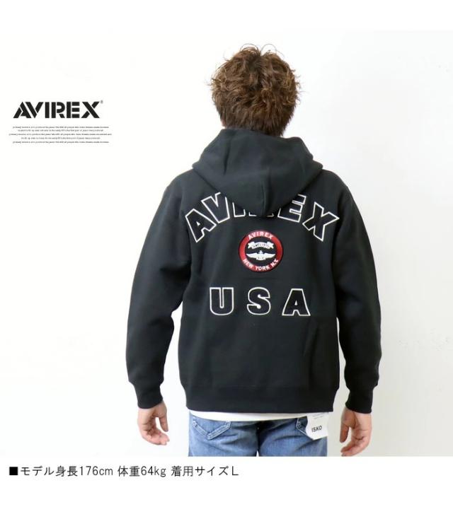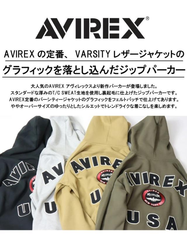 AVIREX アヴィレックス ヴァーシティー ロゴ スウェットジップパーカー 裏起毛 フーディー スウェットパーカー メンズ アビレックス 送料無料 6123467 783-4931002