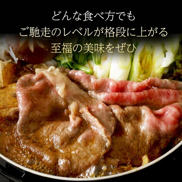 黒毛和牛のA4等級を使用。高級部位リブロース・サーロインの美しい霜降り部分をスライスしました。やわらかくとろける食感と脂の甘み、お肉の 旨みはしゃぶしゃぶ、すき焼きなどの鍋料理に最適です。 ご家庭で専門店のような豪華なお鍋をお楽しみください。 またお中元・母の日、お祝い・内祝いなどのギフトにも大変好評です。 【黒毛和牛・和牛・A5・すき焼き・すきやき・すき焼・しゃぶしゃぶ・ 霜降・霜降り・牛肉・お祝い・御祝・内祝・ギフト・お中元・母の日・ 母の日・父の日・敬老の日】 |