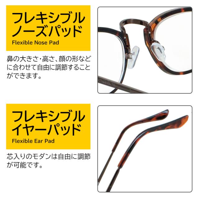 | ●種類 DR-111MN クリアブラウンデミ/ブロンズ R-449PF ブラック/ダークガン ●レンズカラー クリア | ●素材 フレーム:プラスチック、ニッケル合金 テンプル:ニッケル合金 レンズ:プラスチック ●仕様 UVカットレンズ フレキシブルノーズパッド フレキシブルイヤーパッド |