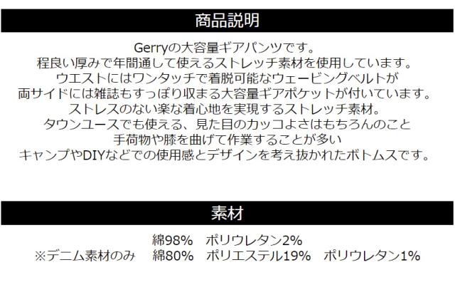 GERRY ジェリー ストレッチ キャンプパンツ メンズ ギアパンツ アウトドア ブランド キャンプ DIY カーゴパンツ 【RI3-1118】 送料無料 通販A3