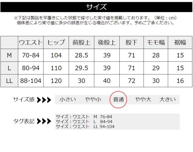 - ウエスト94cmでLL購入。少しウエストは緩いが、それ以外は問題なし。 メーカーもLでもう少しサイズに余裕持たせてくれれば良いのにと、いつも思う。だいたいのメーカーは、Lで84~94なんだが、もう少し前後余裕持たせて、上下サイズが3cmくらいカバーされてればもっと選択肢が増えるのに…と思います。