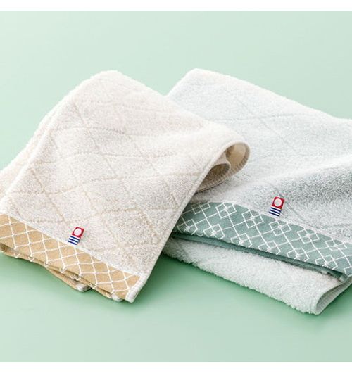 小紋柄をあしらったシンプルなデザインで、シーンを選ばず使いやすいタオルです。