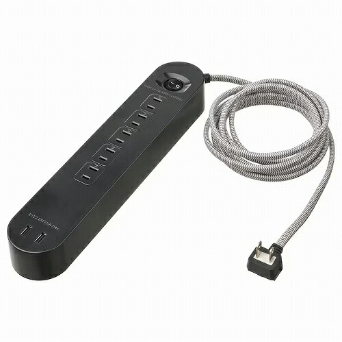 IKEA イケア 電源タップ 5個口 USBポート2口付き ブラック ホワイト テキスタイル 3.0 m m30464263 KOPPLA コップラ