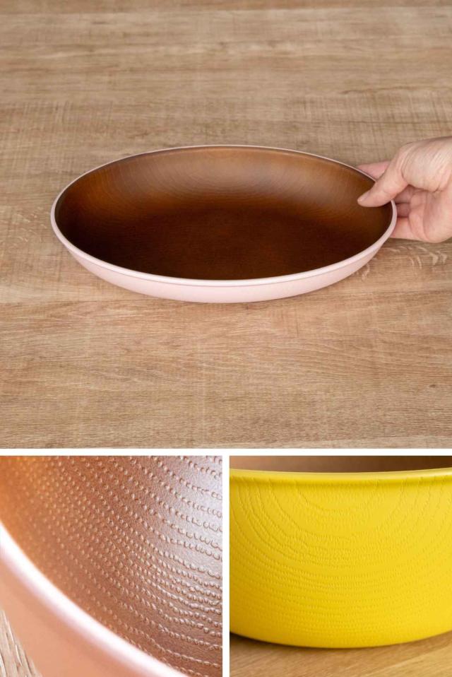 内面にはクリーンコート加工がほどこされています。汚れが落ちやすく、水切れもいいので、気軽にお使いいただけます。本物の木製も素敵ですが、お手入れが大変そう。と思われる方にぴったりのアイテムです。