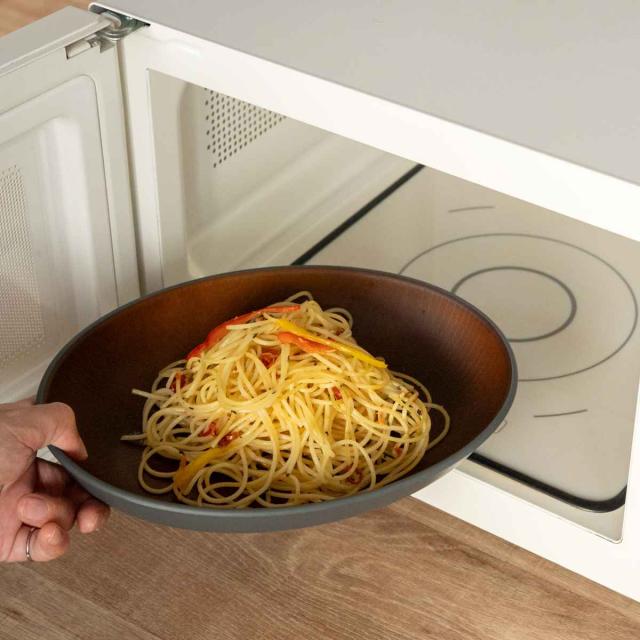 ナチュラルな雰囲気にアクセントカラーで優しさをプラスした木目調のプレートです。あたたかみのあるシンプルなデザインはどんな食卓にも馴染んでくれます。カレーやパスタ皿としてちょうどいいサイズ感です。