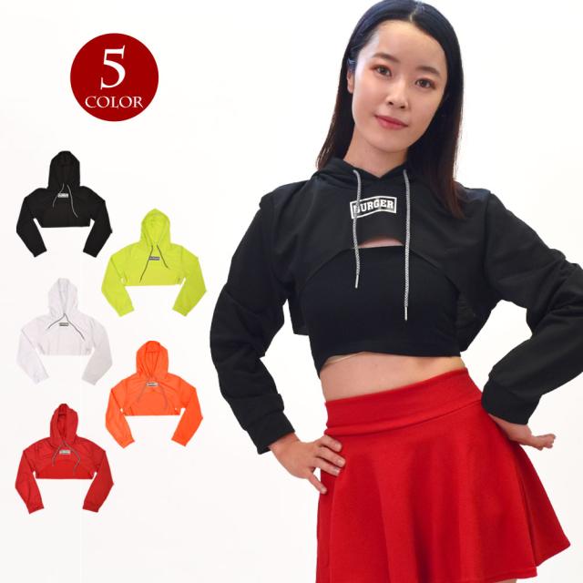ダンストップス ショート丈パーカー フード付きトップス へそ出し ダンス衣装 ヒップホップ衣装 BG27K53[M便 2/3]