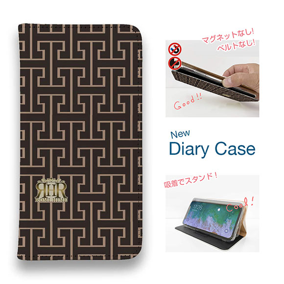スマホケース 手帳型 ベルトなし iPhone17 Pro Max iPhone Air iPhone16e Pro Max 16 Plus 15 Pro Max 14 Plus Xperia 10 VII Galaxy AQUOS Pixel10 Pro XL ROMI HIME マーク・ロゴ ベージュ