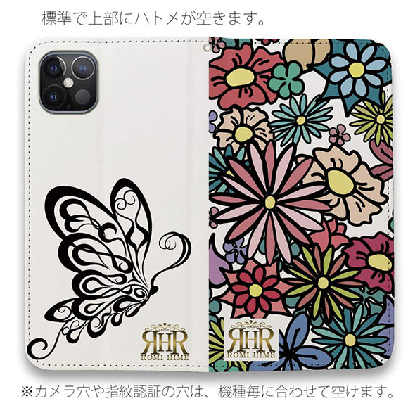 スマホケース 手帳型 ベルトなし iPhone17 Pro Max iPhone Air iPhone16e Pro Max 16 Plus 15 Pro Max 14 Plus Xperia 10 VII Galaxy AQUOS Pixel10 Pro XL ROMI HIME 蝶 花 花柄 レトロ ホワイト