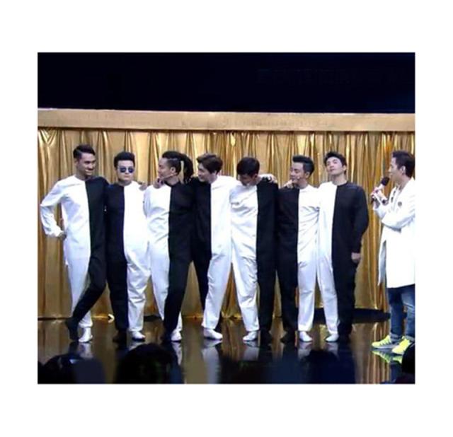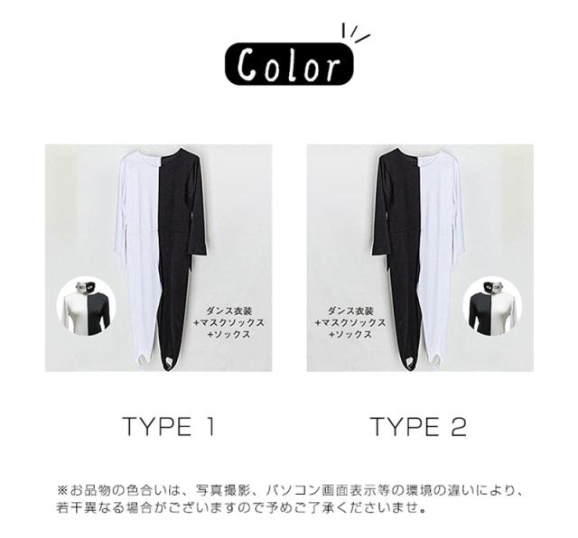 ◎例:「黒白タイツ」と「白黒タイツ」の人が隣同士にした場合など、左右異なる色を使った定番コスチュームの全身タイツです。
