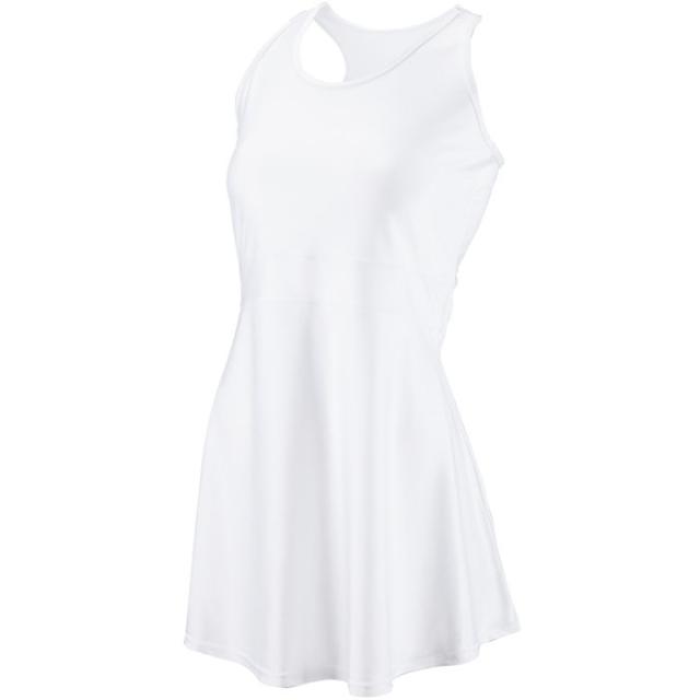 ナイロン84%、ポリウレタン16%の上質な光沢感と伸縮性のある吸汗速乾素材を使用したテニスワンピース。背中部分を狭くし、衿ぐりとアームの広さを体にフィットさせた、動きやすいデザインのワンピースです。後身頃は少し長めに、ウエストラインのくびれを高めにすることでスタイリッシュなシルエットに仕上がっています。