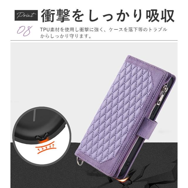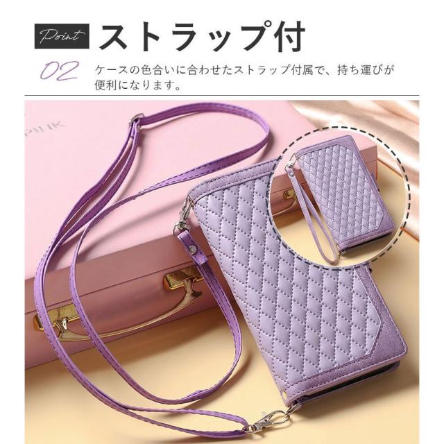 ケースの色合いに合わせたストラップ付属で、落下防止&荷物を減らせます。