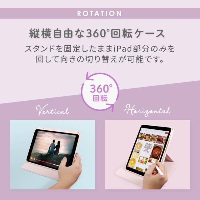 iPad 10.2インチ対応 360度回転可能 Apple Pencilを収納しながら充電できるホルダー付きケース