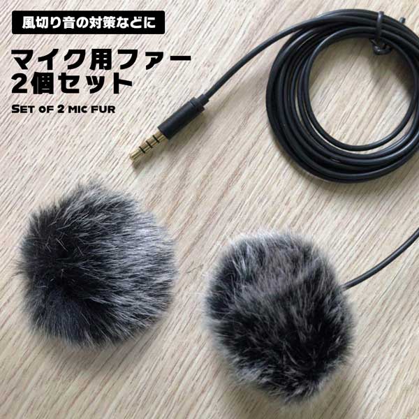 ファー マイク 風防 雑音低減 ラペル ラベリアマイク 風切り音対策 ピンマイク ブラック 2個セット 送料無料
